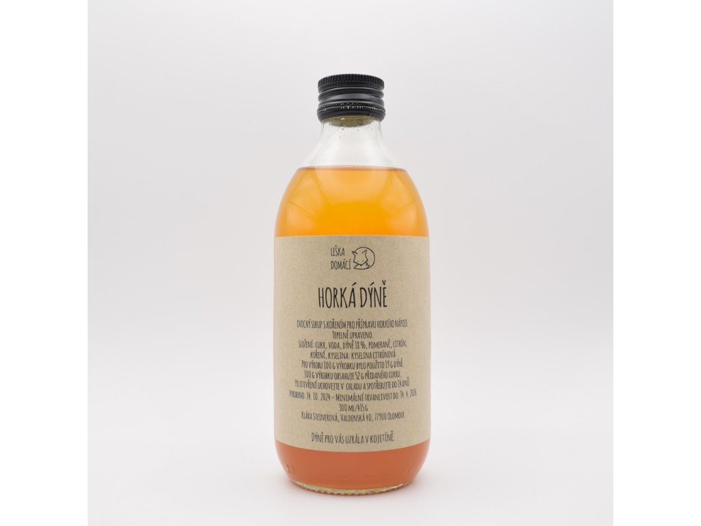 OVOCNÝ SIRUP S KOŘENÍM PRO PŘÍPRAVU HORKÉHO NÁPOJE.