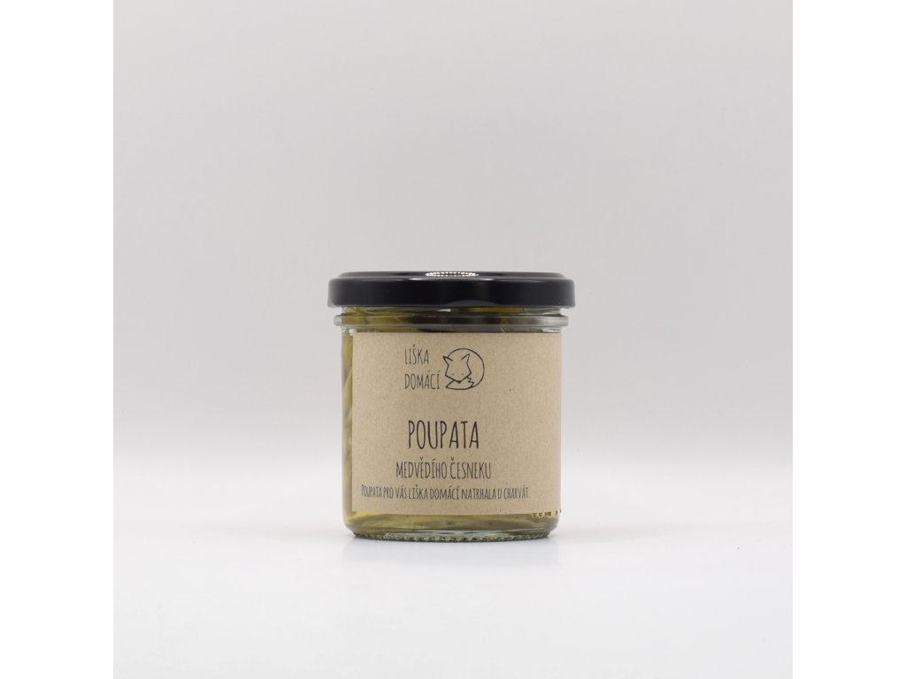Složení: nálev (vinný ocet, voda, cukr, sůl, pepř čtyř barev), čerstvá poupata medvědího česneku 40 %